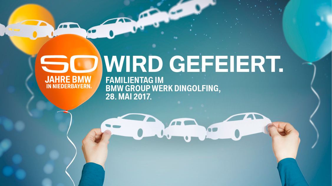 Das 50-jährige Jubiläum des größten Arbeitgebers in Niederbayern war den BMW Group Werken ein eigenes Branding wert. Die an die legendären „BMW-Nieren“ erinnernde 50 wurde zentraler Bestandteil der Kommunikation in Form von Großflächen, Anzeigen, Publikationen, Jahreskalender u. v. m. Darüber hinaus begleiteten wir zahlreiche Festveranstaltungen, Familientage und Publikumsevents über das gesamte Jubiläumsjahr hindurch. Das eigenständige Branding würdigt damit auch Niederbayern als Standort, der auf eine äußerst erfolgreiche gemeinsame Entwicklung zurückblicken kann.